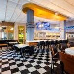 This sports bar offers an elite sports bar experience that blends sophistication with excitement through high-definition sports viewing, elevated bar food, premium drinks, and a premier atmosphere near major stadiums. Parlay has unique cocktails and a happy hour that boasts tasty bites like Crispy Confit Chicken Wings, Wasabi Salt Fries with Chili Crisps, while their main menu features brick oven pizza, and 24 Karat Gold Mac & Cheese–a decadent mac served in a cast-iron skillet.